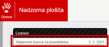 Datum, do katerega ste upravičeni do posodobitev Codeks programske opreme je enak datumu veljavnosti licence. Nahaja se v Nadzorni plošči aplikacije Codeks.