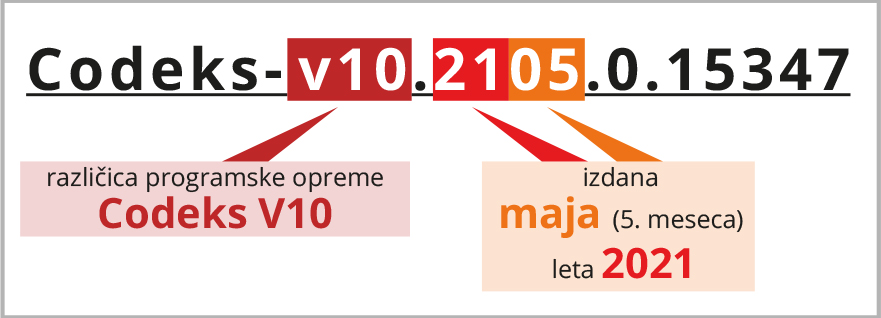 Imena različic Codeks programske opreme v imenu nosijo oznako meseca in leta izdaje.